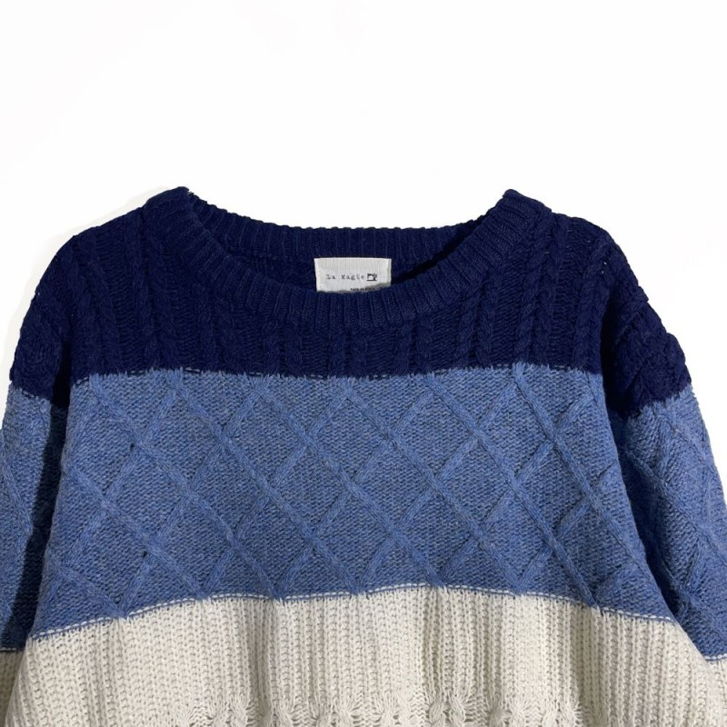 | رنگ | لباس بافتنی چند رنگ سرمه ای, آبی روشن و سفید |