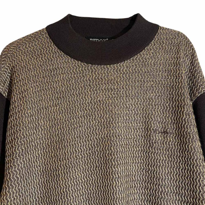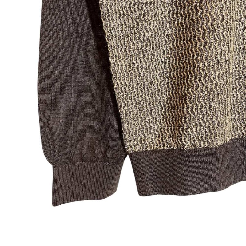 این پلیور یقهگرد با طرح بافت ریز یک گزینه شیک و کاربردی برای فصل پاییز و زمستان است. قسمت جلوی پلیور دارای بافتی ریز و چشمنواز است که به آن ظاهری متفاوت و کلاسیک میبخشد، در حالی که آستینها و یقه از رنگ قهوهای تیره، جلوهای متعادل و جذاب ایجاد کردهاند.