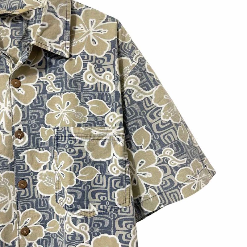 این مدل با زمینه طوسی-بژ و گلهای درشت استوایی طراحی شده که حس استایل کلاسیک هاوایی را با رنگهای خنثی ترکیب کرده است. گلهای درشت جلوهای جسورانه دارند اما به دلیل طیف رنگی ملایم، همچنان قابل استفاده روزمره هستند.