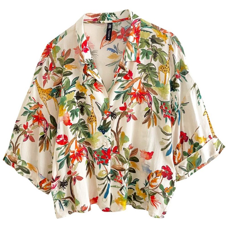 شومیز آستین پاکتی کوتاه با قواره باکسی و کوتاه با قد تا حدود روی کمر،جنس این پیراهن آستین کوتاه نخی ریزشی و سبک است و بسیار خنک و راحت میباشد.