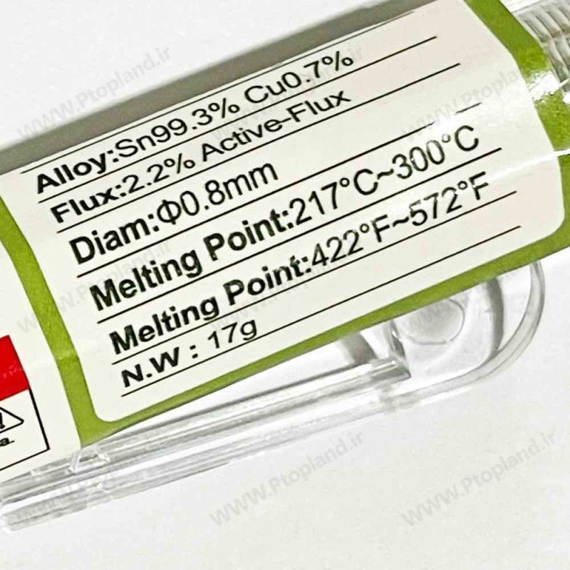 آلیاژ: 99.3% قلع (Sn) + 0.7% مس (Cu)