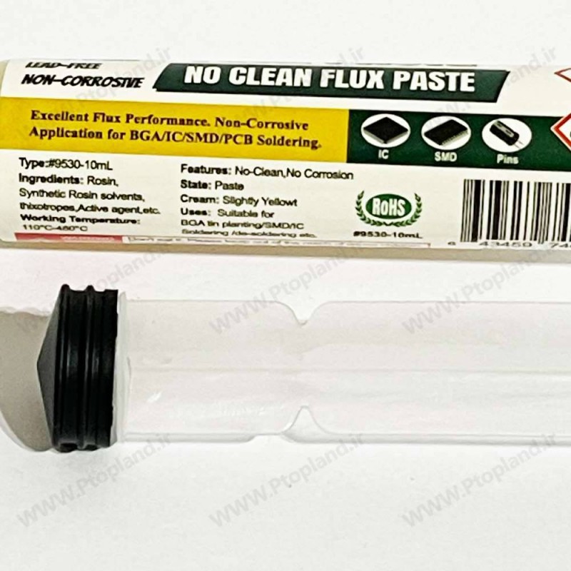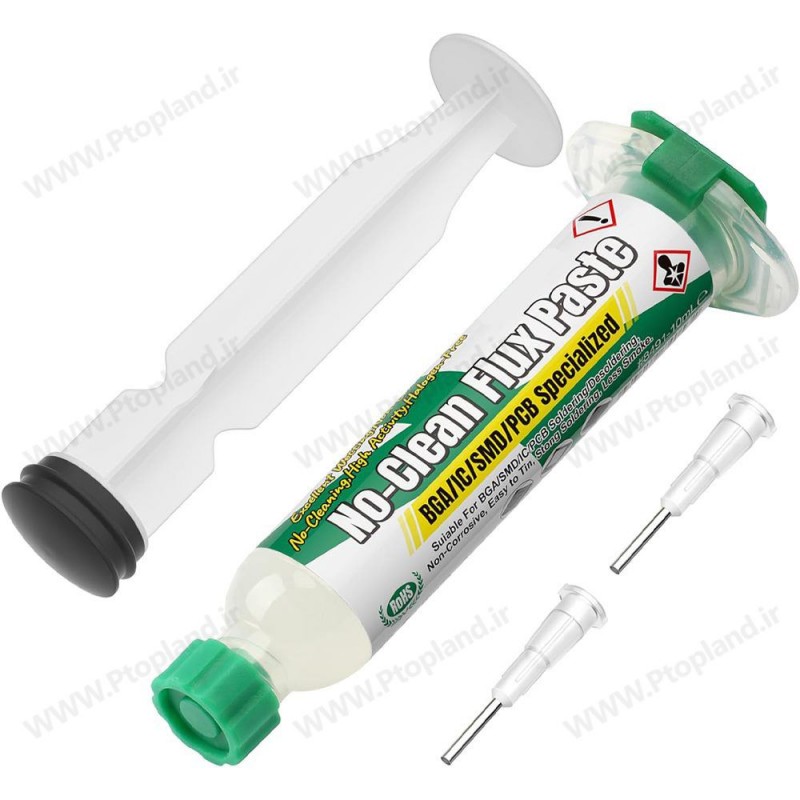طراحی سرنگی خمیر فلکس باعث میشود اعمال آن روی قطعات SMD و نقاط دقیق بسیار آسان و کنترلشده باشد.