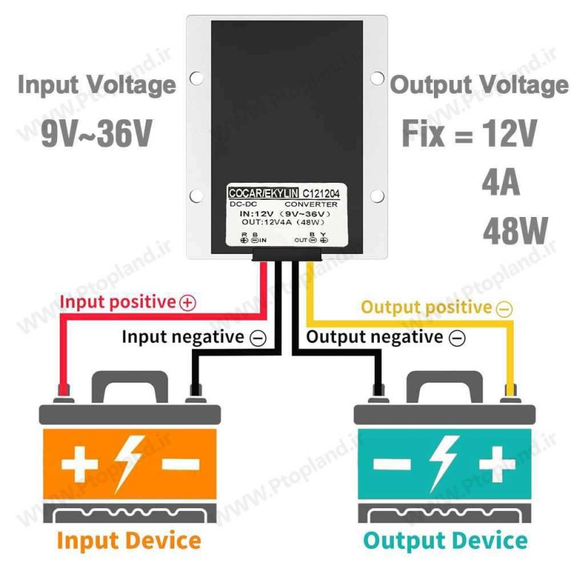 تثبیت کننده ولتاژ 12 ولت, (ورودی 9 تا 36 ولت ، خروجی 12 ولت 4 آمپر) برند COCAR/EKYLIN