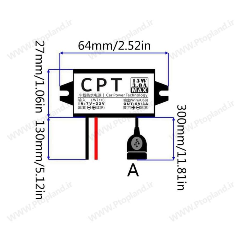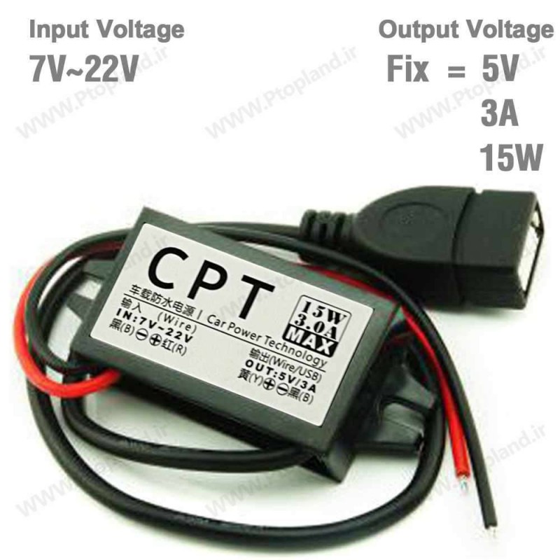 | مورد استفاده | مبدل ولتاژ 12 ولت (رنج 7 تا 22) مانند باطری ماشین به 5 برای کاربرد های متنوع مانند شارژ, تغذیه و ... |