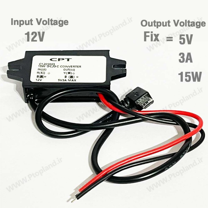کانورتر DC با ورودی 12 ولت و خروجی 5 ولت 3 آمپر