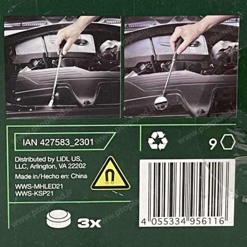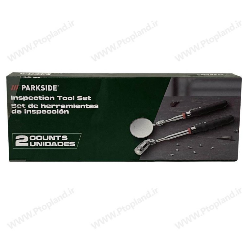 ست آینه و آهنربای تلسکوپی پارکساید با بازوی متغیر و چراغ LED برای بازرسی در فضاهای محدود. مناسب برای پیدا کردن اشیاء گمشده و برداشتن پیچ و مهرهها.