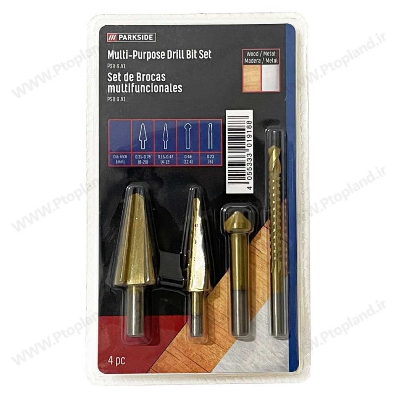 ست مته 4 تایی پارکساید مدل PSB 6 A1 شامل متههای مخروطی، خزینه و برش با طراحی دقیق برای کار با چوب و فلز است. این متهها از استیل HSS با پوشش تیتانیومی ساخته شدهاند که تضمینکننده دوام، مقاومت بالا در برابر سایش و طول عمر بیشتر است. این ست شامل: