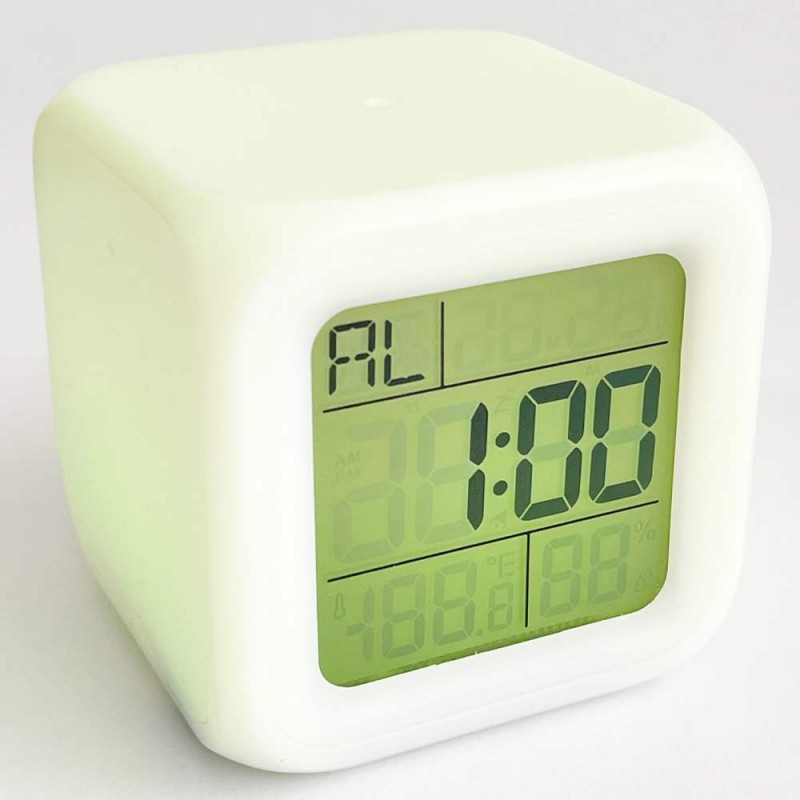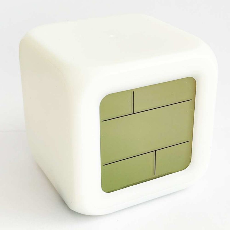 | ویژگی خاص | ساعت مجهز به 6 دکمه ژلاتینی در وجه پائین مکعب به نامهای : SET,UP,DOWN,MODE و 2 عدد برای TAB به شکل برجستهتر هست که به راحتی در طول شب با فشار روی وجه بالایی ساعت دکمه TAB فعال شده و باعث روشن شدن وجههای چراغ و LCD برای خواندن یا چراغ خواب میشود. |